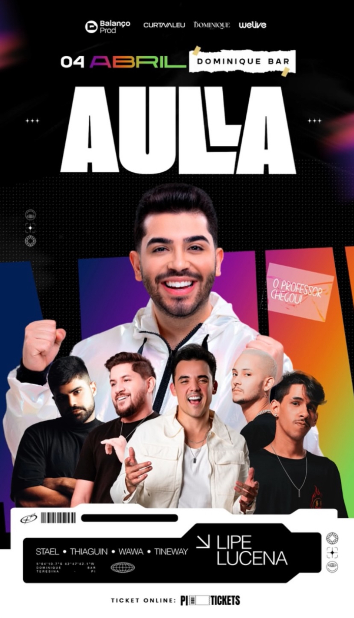 Hoje, sexta-feira, 4 de abril, acontece a festa Aulla no Dominique Bar — um dos melhores bares de Teresina, conhecido pelo ambiente moderno e cult. O lineup da noite reúne Lipsena, Wawa, Tiaguin e Tinei, prometendo um mix de sons e estilos para quem quer curtir até o fim.
