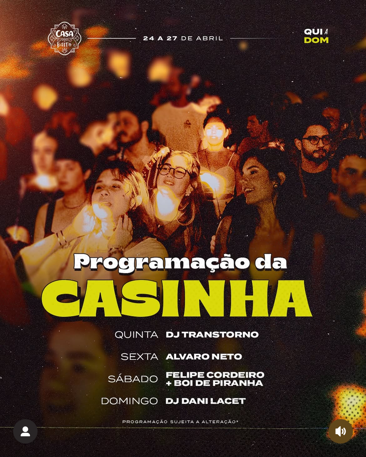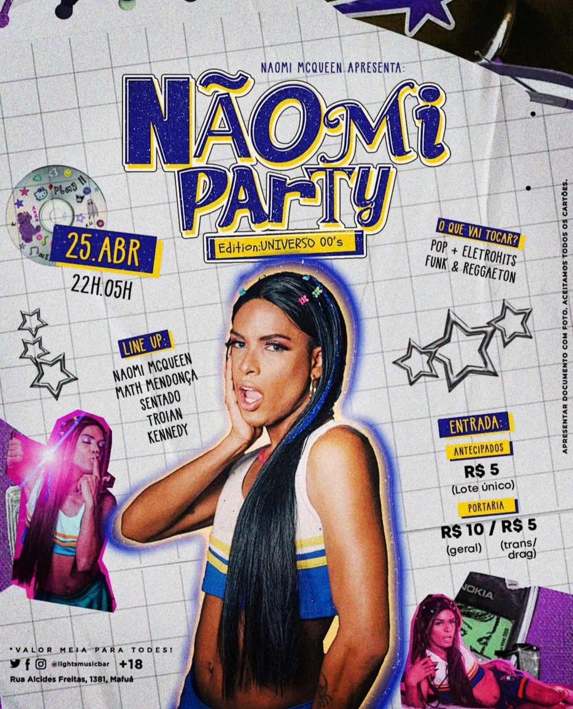 • Sexta-feira (25/04): A festa MIPARTY chega com tudo, inspirada nos hits e na estética dos anos 2000. Muito brilho, nostalgia e atitude numa noite pra quem ama dançar e reviver uma era icônica da cultura pop.