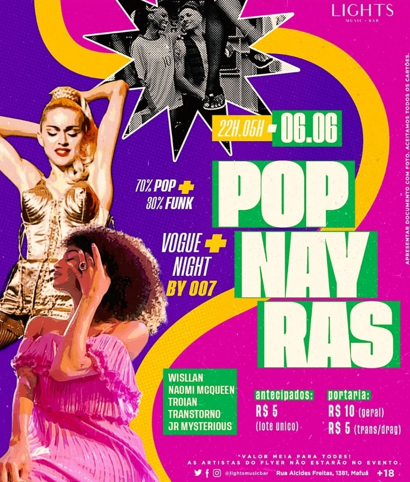 Sexta (6): PopNayraas — muito pop e funk, das 22h às 5h