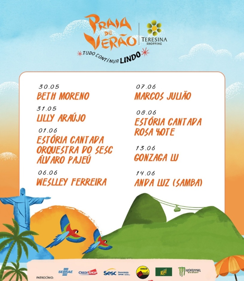 Pra quem gosta de clima leve, som ao vivo e boas opções gastronômicas, a Praia de Verão voltou! O espaço, montado anualmente pelo Teresina Shopping, traz sempre um tema diferente — e neste ano a vibe é total Rio de Janeiro. Um lugar perfeito para ir com amigos, família, comer bem e viver uma experiência multicultural.