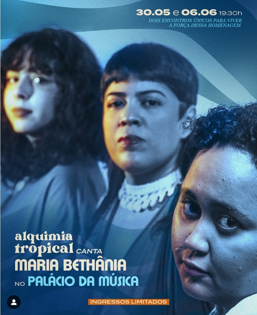 Nesta sexta (6), às 19:30h, a banda Alquimia Tropical apresenta um especial em homenagem a Maria Bethânia no Palácio da Música. Uma das melhores bandas locais em uma performance imperdível.