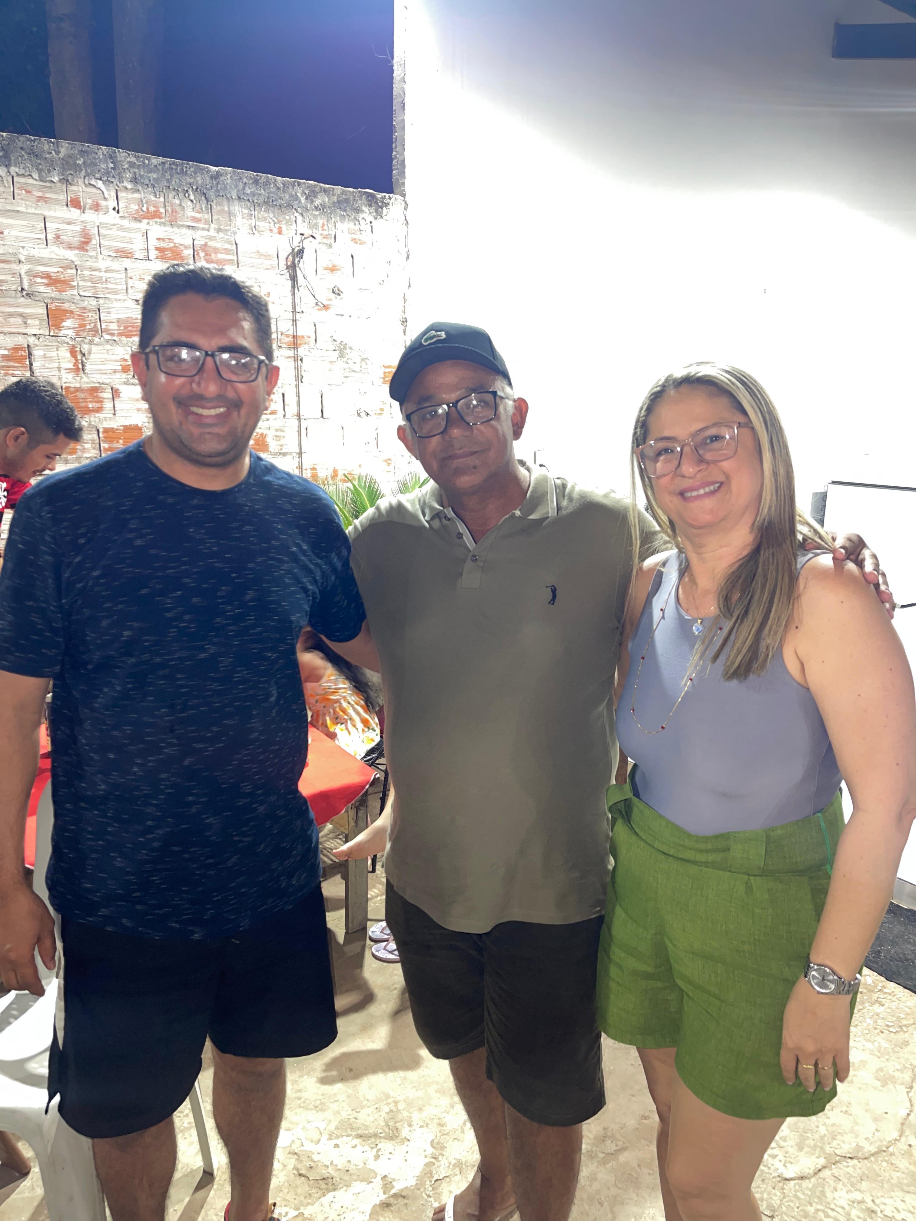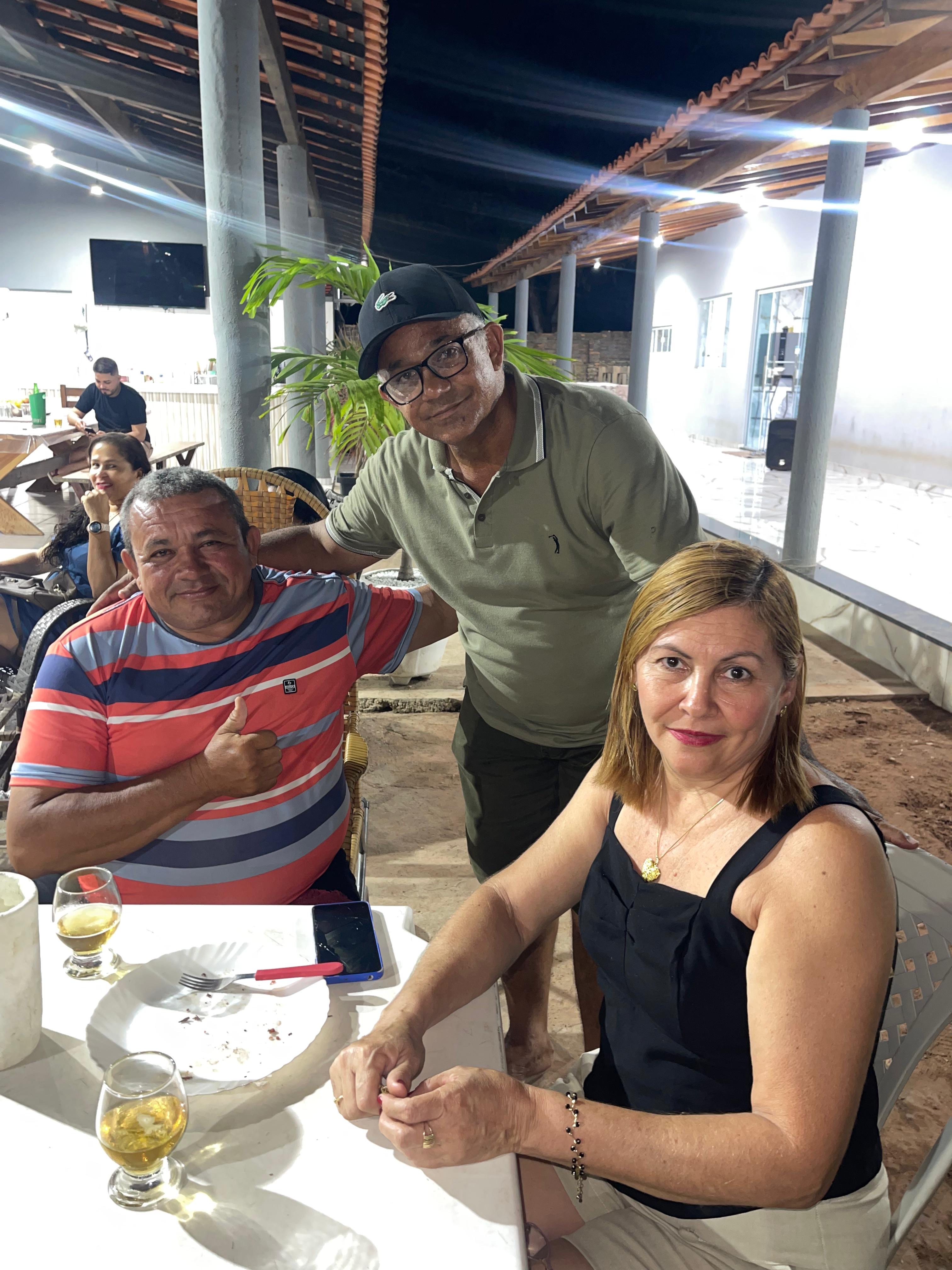 O aniversariante seu Raimundo da Padaria ao lado do gestor da AGERP regional Timon, Reginaldo Sibá e sua esposa Dra. Reijane Magalhães.