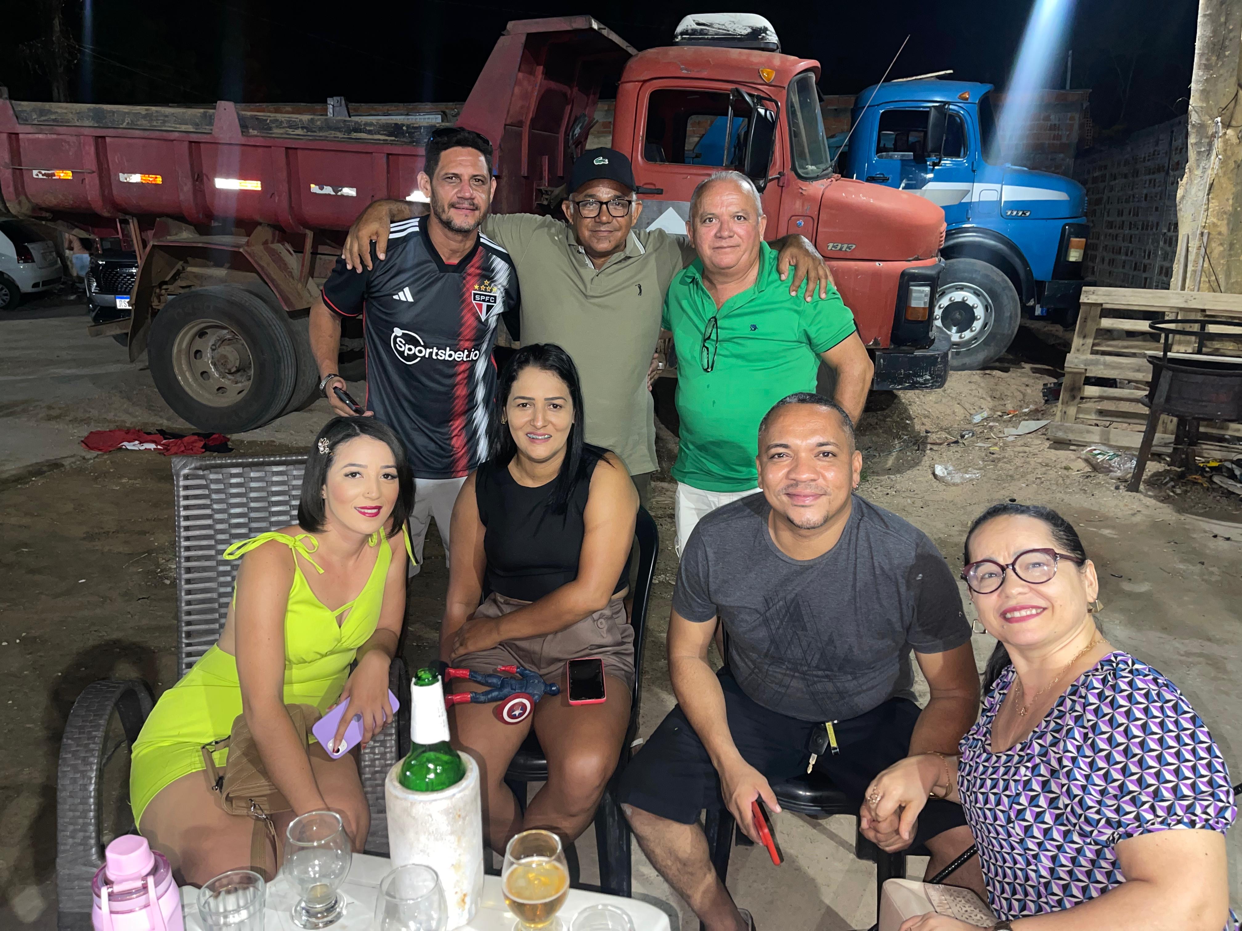 Seu Raimundo da Padaria ao lado dos amigos: Jhonatas, Francisco Moura, Salete, Eduardo Desidério, Samara e Milena.