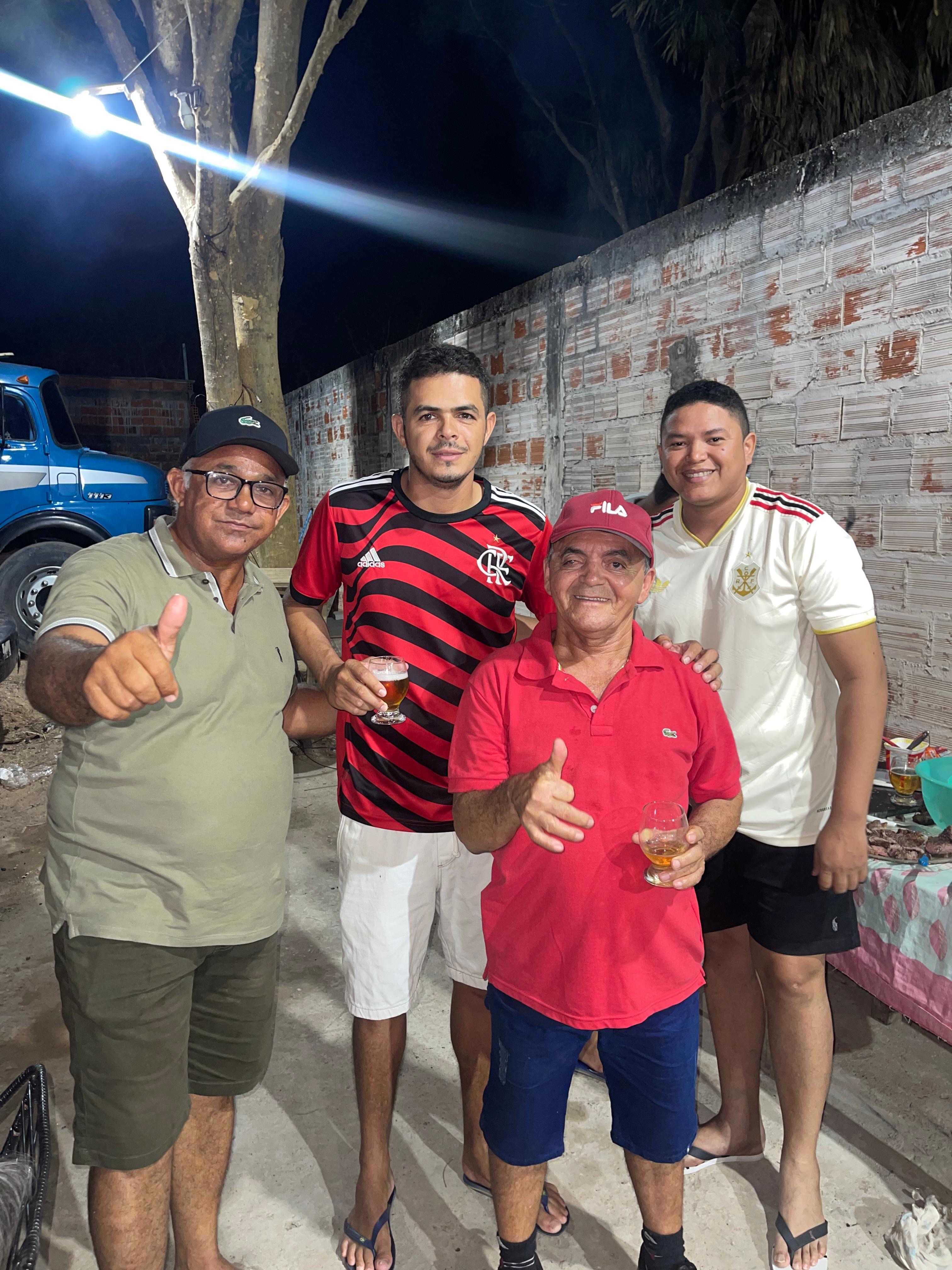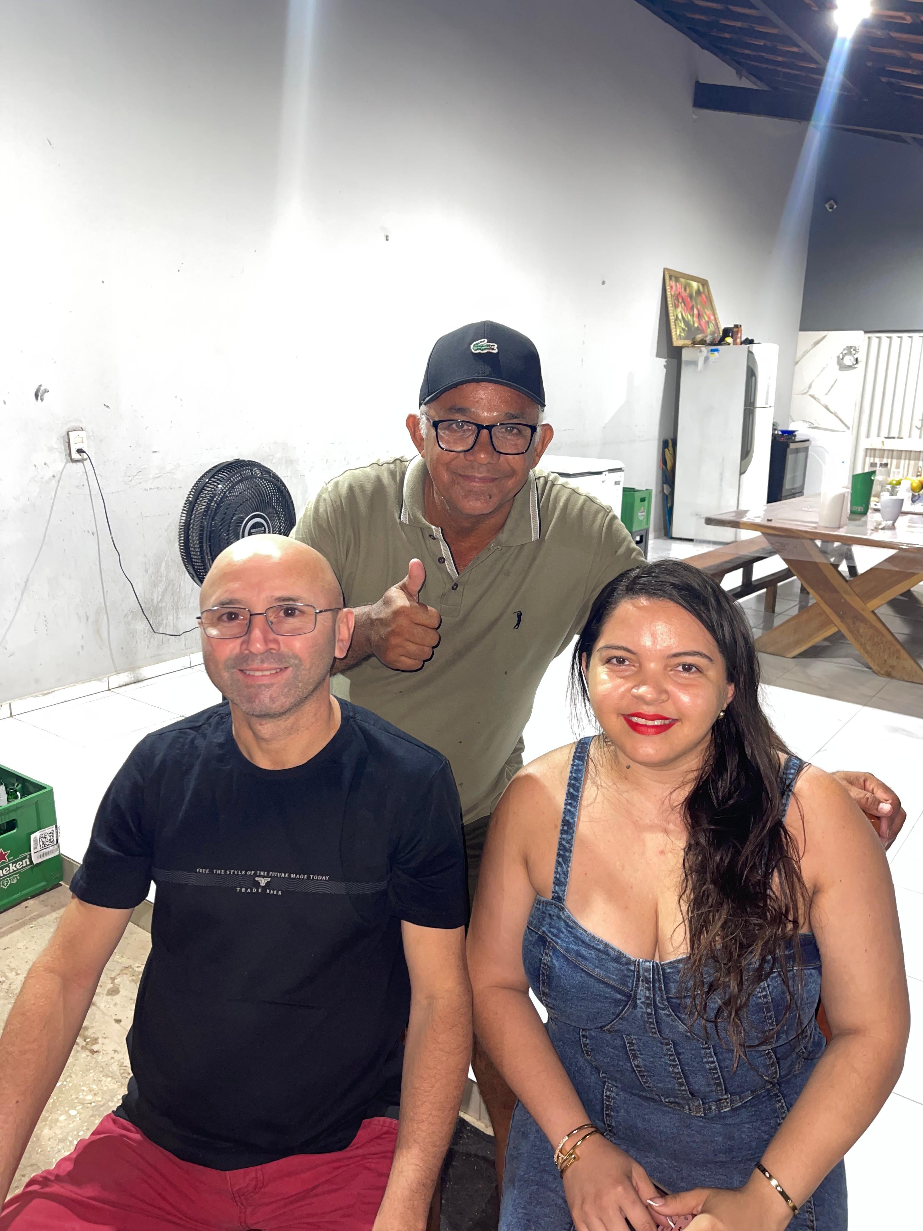 Seu Raimundo da Padaria ao lado do secretário de Esportes Ramon Júnior, do seu outro lado o empresário Alexandre CD 25, e ao seu lado Karolina.