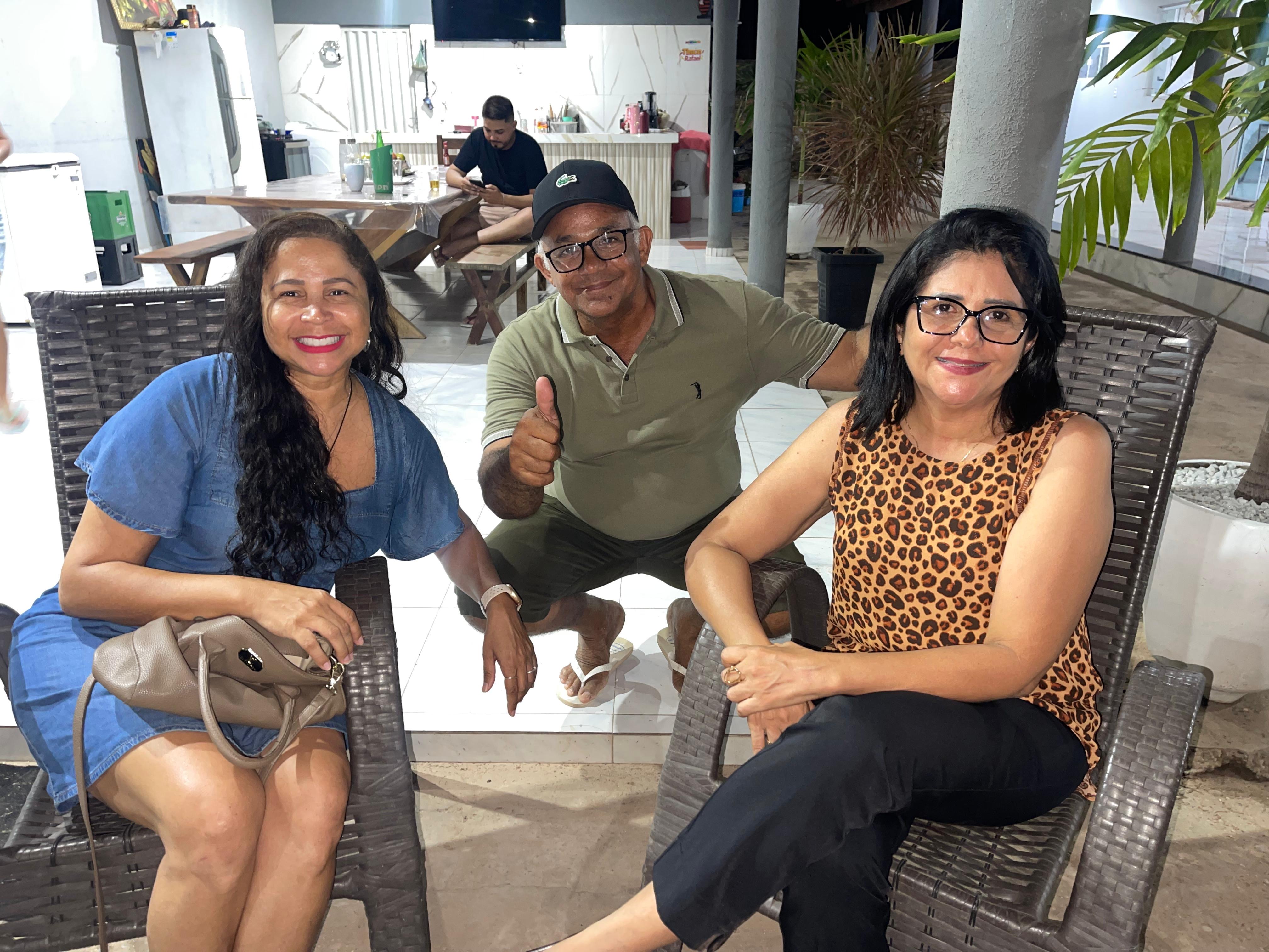 Seu Raimundo da Padaria ao lado dos amigos Marcos Vinicius e Denise Guimarães.